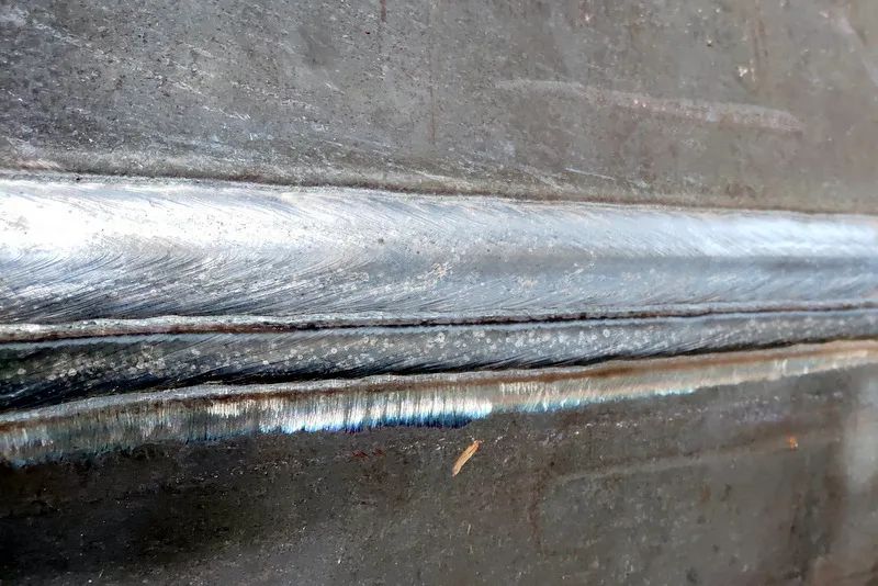試驗初期,在DN800鍋筒環(huán)縫上焊接時發(fā)生的熔敷金屬濺出。